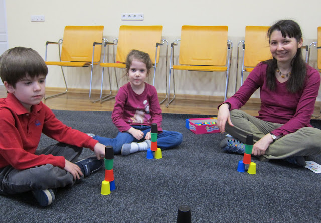 а с младшими мы строили из цветных стаканчиков от игры «скоростные колпачки»